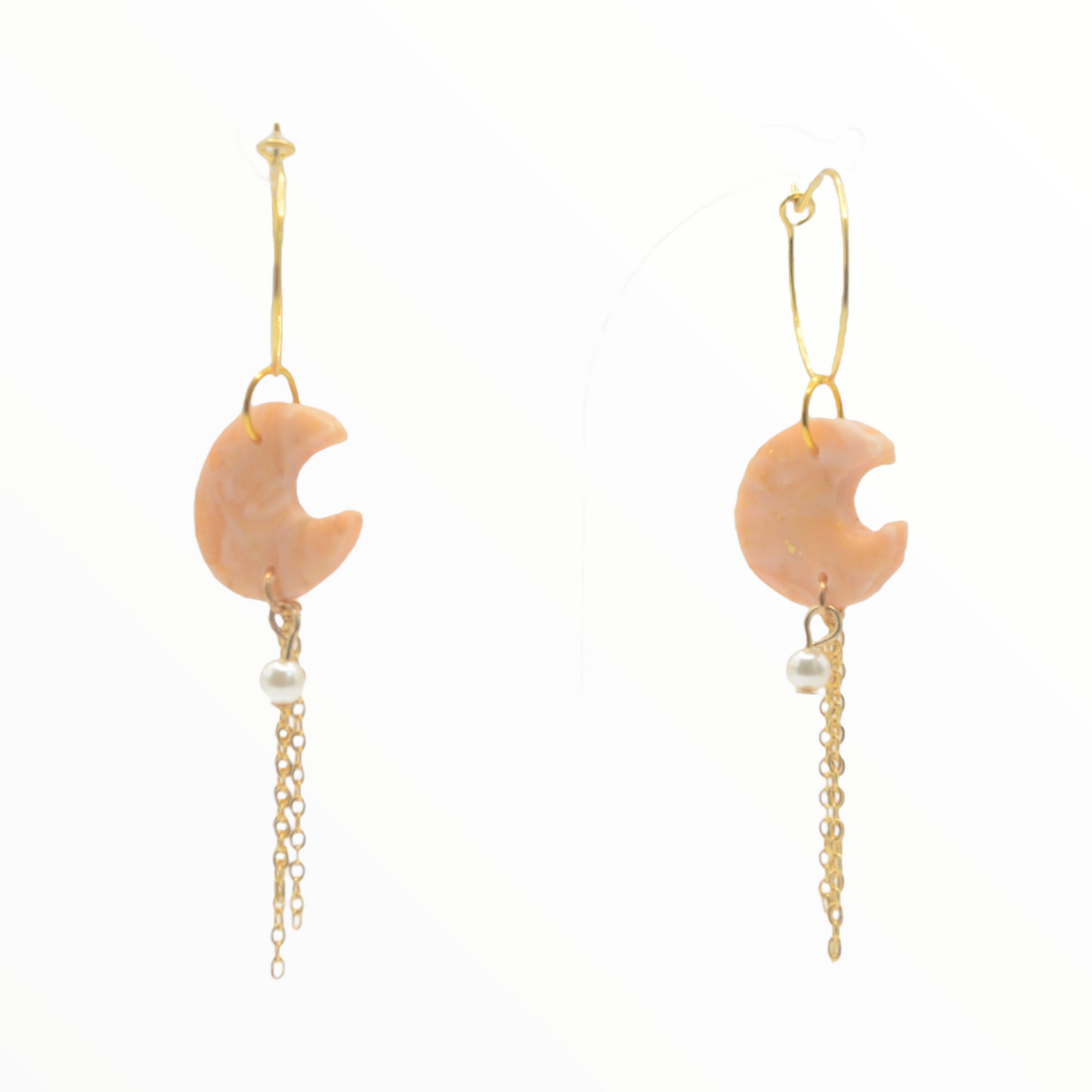 Mondanhänger mit kleiner Perle und Kettendetail in gold.