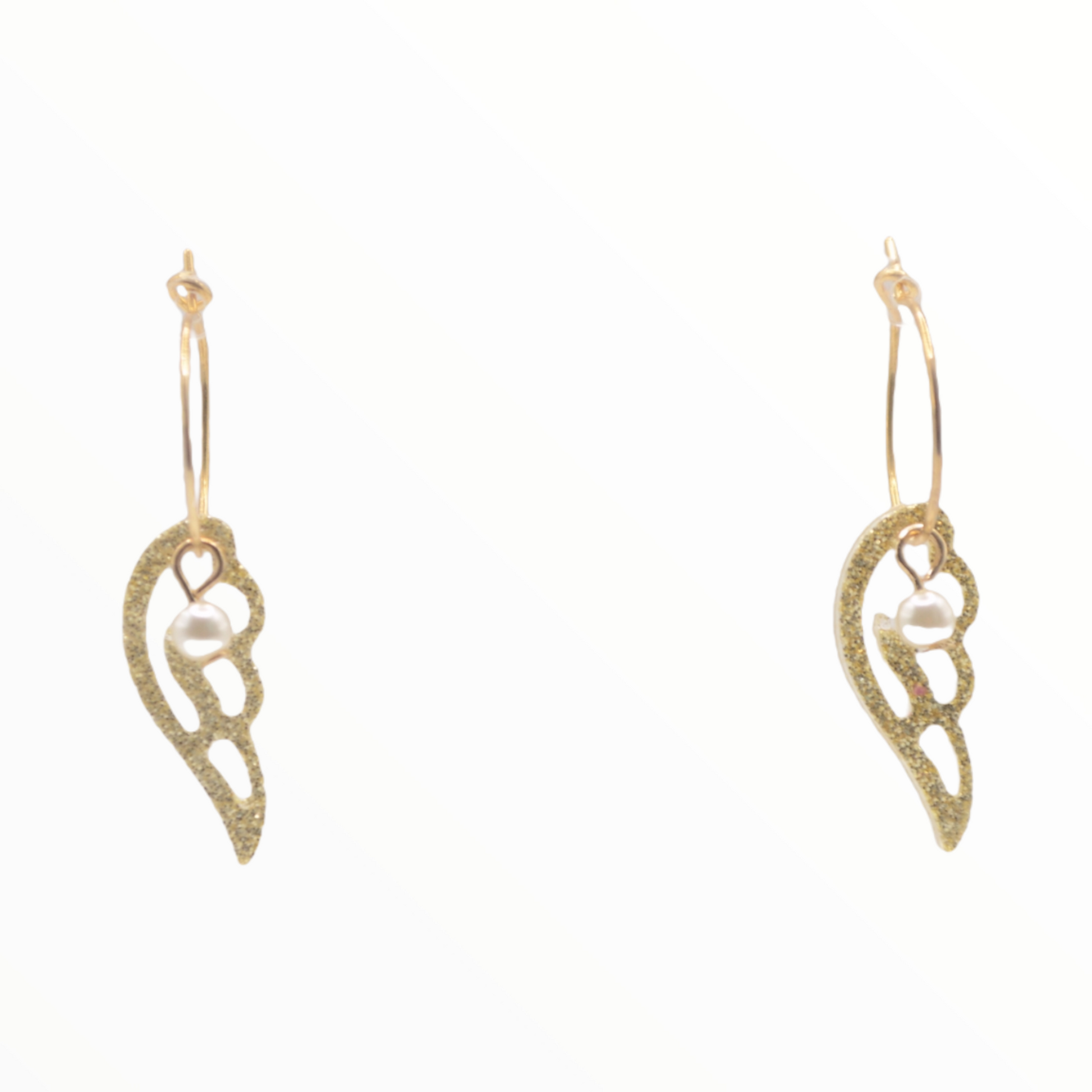 Kleiner zarter Flügel Anhänger in Gold Glitter mit Perle an kleiner Creole.