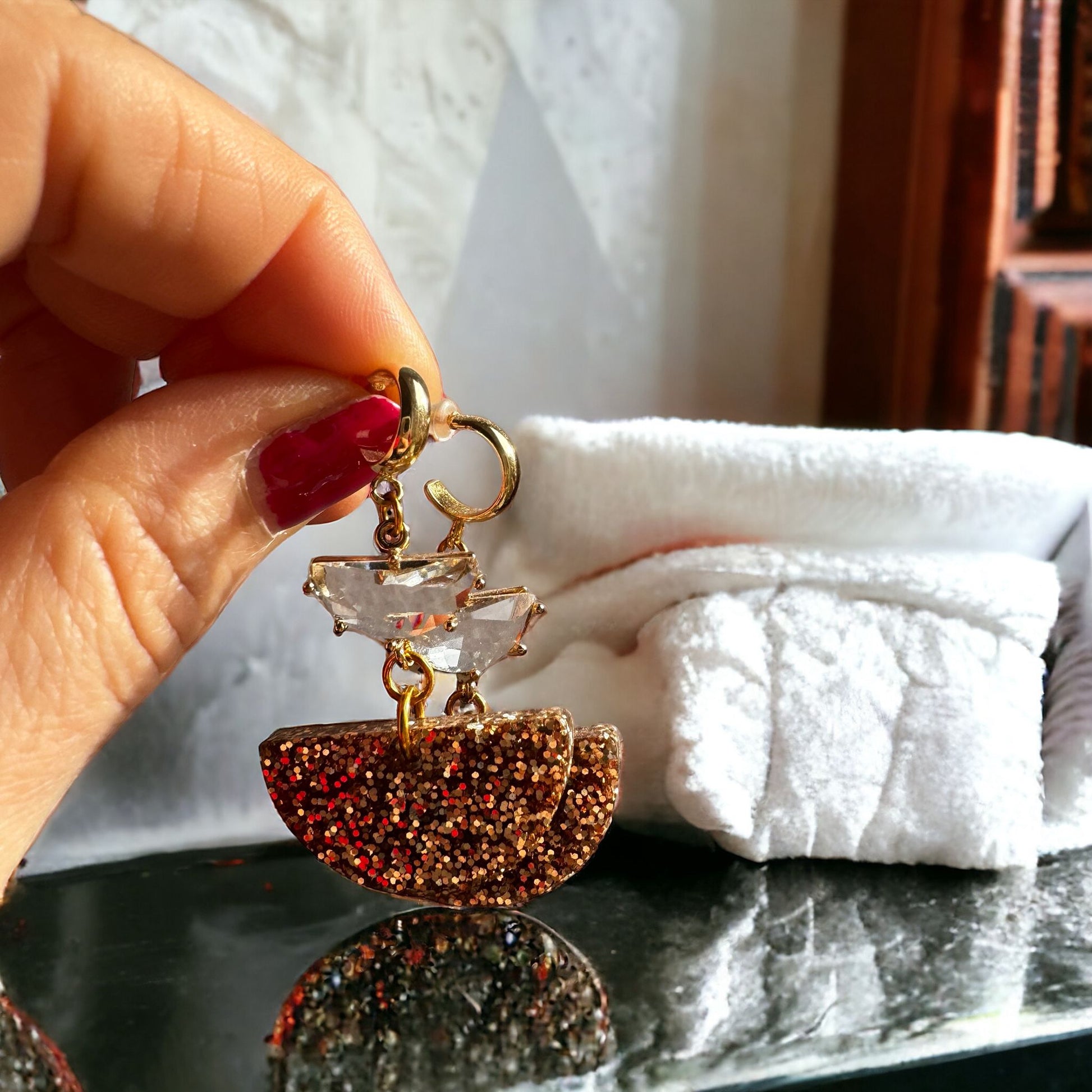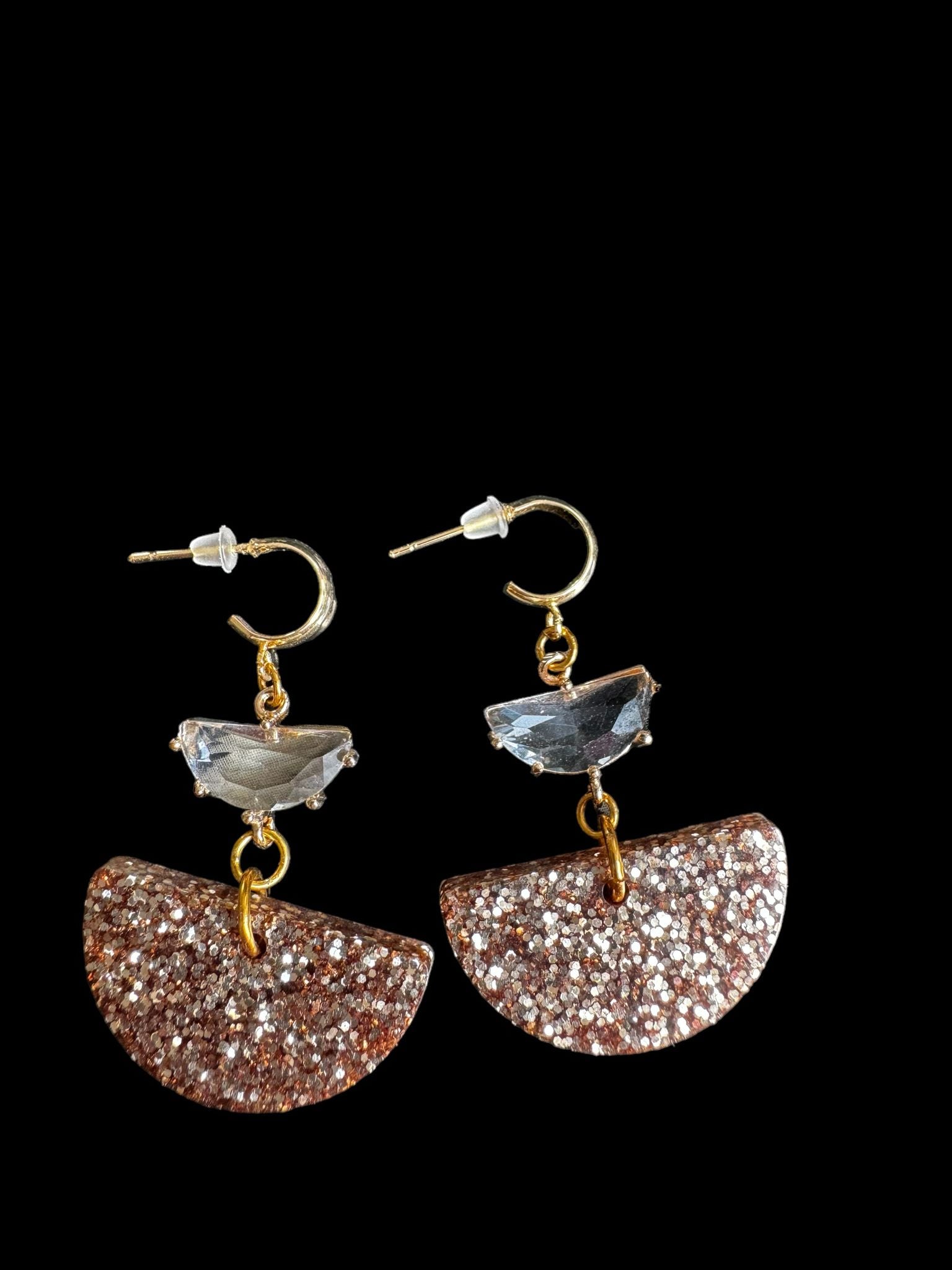 Super leichte Ohrringe aus Kunstharz mit facettiertem Glasstecker und Mini Creolenstecker 18k vergoldet.